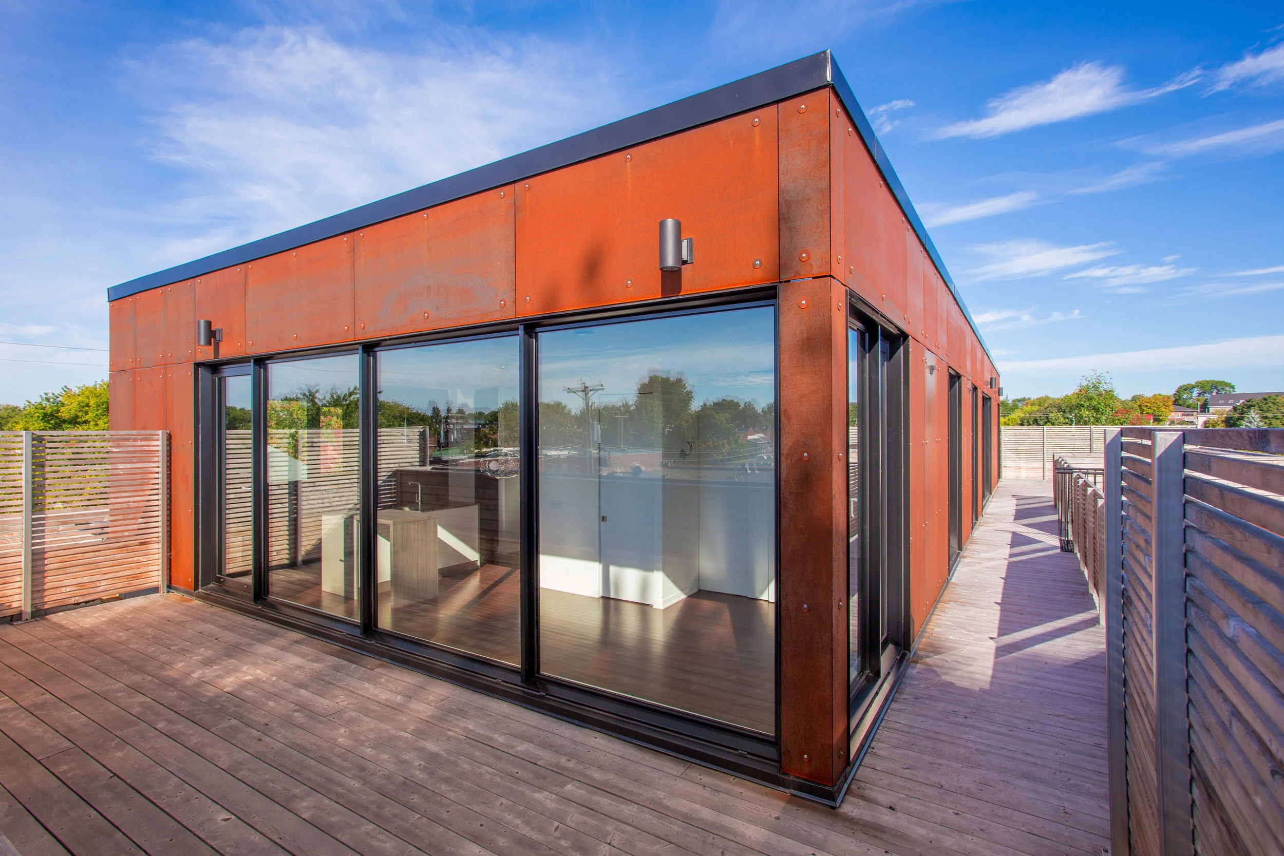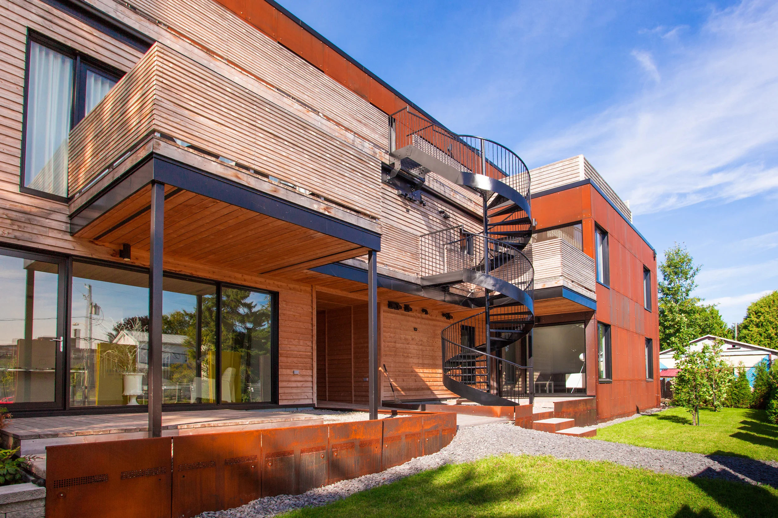 Fabrication du revêtement en acier en collaboration avec François Béroud, artisan et fabrication des écrans de bois en collaboration avec Louis Montpellier, artisan. Projet réalisé au sein de l'équipe BGLA inc